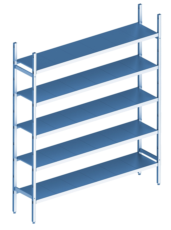 Стеллаж модульный базовый POLAIR LOAD.ME INOX 21AL.5IN40.08B используется на предприятиях общественного питания, торговли, пищевых производствах и складских помещениях. Данная модель может стыковаться с базовой и угловой секцией модульной стеллажной системой. Материал каркаса – анодированный алюминиевый профиль, материал полок – нержавеющая сталь, материал ножек – прочный сплав.