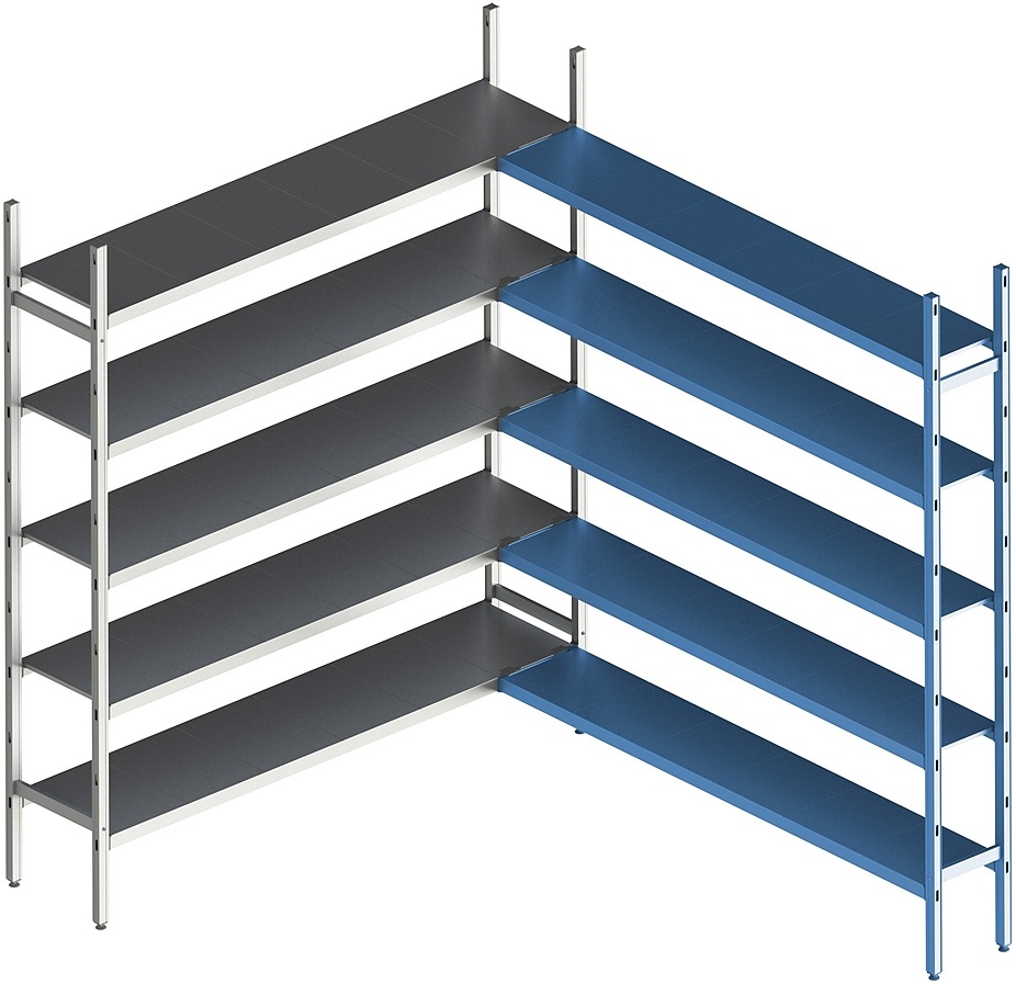 Стеллаж модульный угловой дополнительный POLAIR LOAD.ME INOX 18AL.5IN30.13C используется на предприятиях общественного питания, торговли, пищевых производствах и складских помещениях. Данная модель может стыковаться с базовой и угловой секцией модульной стеллажной системой. Материал каркаса – анодированный алюминиевый профиль, материал полок – нержавеющая сталь, материал ножек – прочный сплав.