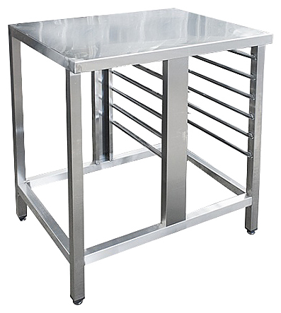 Подставка используется совместно с пароконвектоматами. Модель оснащена регулируемыми по высоте ножками. Каракас выполнен из нержавеющей трубы.