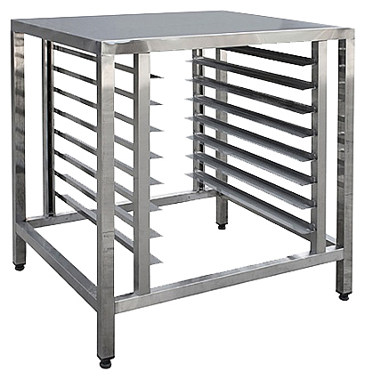 Подставка Пищевые Технологии ПКМ-8 используется совместно с пароконвектоматами. Модель оснащена регулируемыми по высоте ножками. Каракас выполнен из нержавеющей трубы.