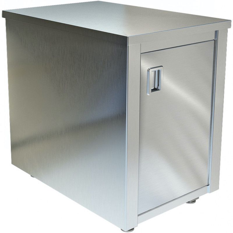 Подставка Техно-ТТ СПИ-834/607 предназначена для установки на неё индукционных казанов ИПВ-111154, ИПВ-112154, ИПВ-142154 и нейтральных модулей МН-90/600 и МН-91/600, а также для хранения кухонного инвентаря на предприятиях общественного питания и торговли. Модель оснащена 1 распашной дверью, 1 сплошной полкой и регулируемыми по высоте ножками, что позволяет компенсировать неровности пола. Сварной каркас и полка выполнены из нержавеющей стали AISI 430.