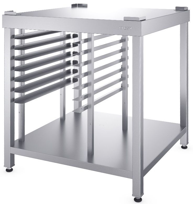 Подставка ATESY ПДТ-Л-840.600.960-02 серии Люкс используется на предприятиях общественного питания и торговли для установки пароконвектоматов Рубикон, а также другого технологического и кухонного оборудования. Столешница, полка и направляющие выполнены из нержавеющей стали AISI 304 толщиной 0,8 мм, стойки - из нержавеющей трубы 40х40 мм.