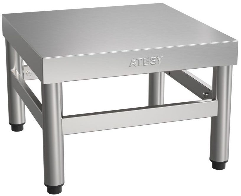 Подставка ATESY ПКИ-П-1000.400.280-02 серии Престиж используется на предприятиях общественного питания и торговли для установки различного кухонного оборудования и инвентаря. Столешница и обвязка выполнены из нержавеющей стали AISI 430 толщиной 0,8 мм, ножки - из круглой трубы 40х40 мм из нержавеющей стали AISI 201.