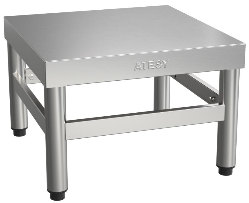Подставка ATESY ПКИ-П-900.500.280-02 серии Престиж используется на предприятиях общественного питания и торговли для установки различного кухонного оборудования и инвентаря. Столешница и обвязка выполнены из нержавеющей стали AISI 430 толщиной 0,8 мм, ножки - из круглой трубы 40х40 мм из нержавеющей стали AISI 201.