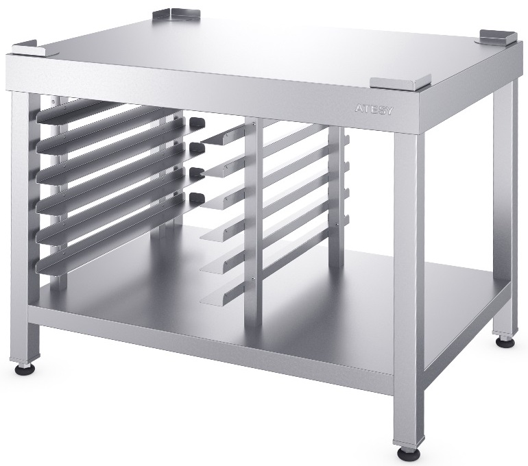 Подставка ATESY ПДТ-Л-700.700.700-02 серии Люкс используется на предприятиях общественного питания, торговли и пищевых производствах для установки технологического оборудования, размещения гастроемкостей и пекарских противней. Опорные ножки регулируются по высоте.