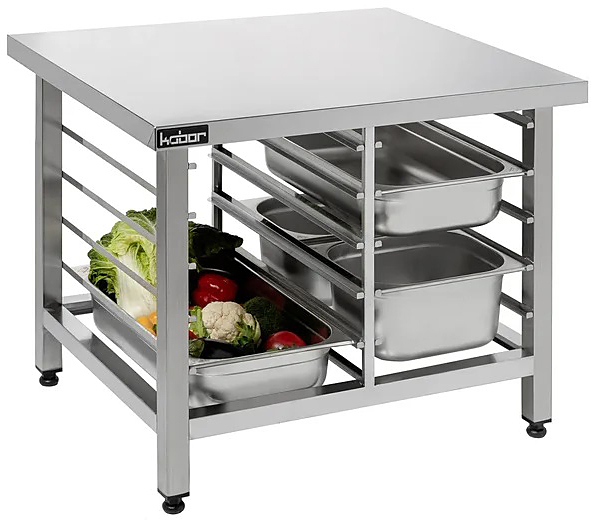 Подставка Кобор ПП-78/85 используется для установки на нее пароконвектоматов Giorik SBHE / MDE / MPE на предприятиях общественного питания, торговли и пищевых производствах. Материал столешницы - нержавеющая сталь AISI 430, каркаса - нержавеющая квадратная труба 40х40 мм.