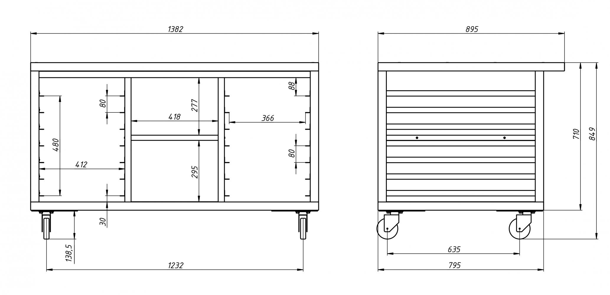 Подставка Grill Master используется совместно с печью ШЖГ/1 на предприятиях общественного питания, торговли и пищевых производствах для хранения противней размером 600х400 мм. Материал изделия - высококачественная нержавеющая сталь и окрашенная сталь.
