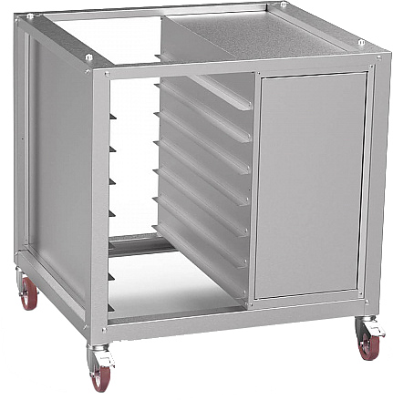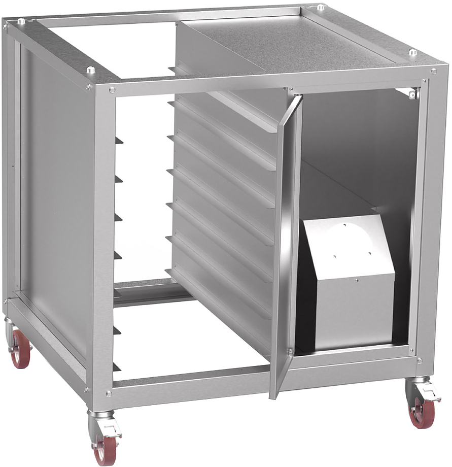Подставка Radax RS8677H9S используется совместно с пароконвектоматами линеек Tolstoy и Chekhov TL12DGCL, CC10DGCL, TL12DYCL, CC06DGCL, CC10DYCL, TL07DYCL, CC04DGCL, CC06DYCL, TL05DYCL, CC04DYCL с системой автоматической мойки для установки оборудования на предприятиях общественного питания, торговли и пищевых производствах. Модель оснащена отсеком с направляющими, баком для моющего средства и полкой.