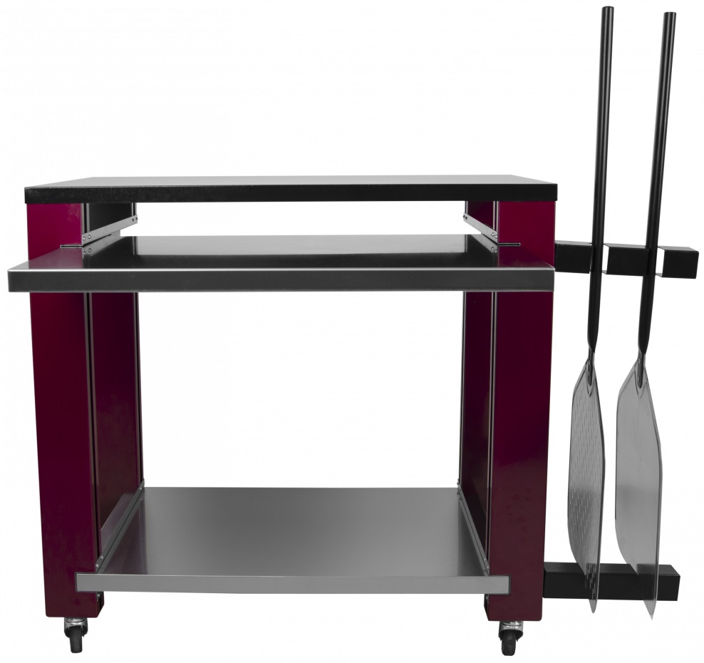 Подставка Grill Master используется на предприятиях общественного питания, торговли и пищевых производствах для установки печей для пиццы ППЭ/1. Модель оснащена выдвижной полкой, обычной полкой для инвентаря, держателями для лопат и колесами со стопорами. Материал изделия - высококачественная нержавеющая сталь.
