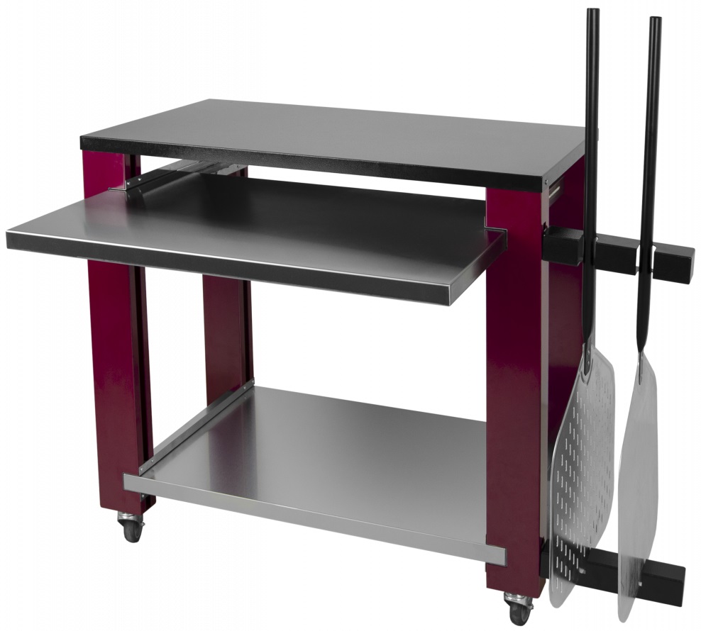 Подставка Grill Master используется на предприятиях общественного питания, торговли и пищевых производствах для установки печей для пиццы ППЭ/1. Модель оснащена выдвижной полкой, обычной полкой для инвентаря, держателями для лопат и колесами со стопорами. Материал изделия - высококачественная нержавеющая сталь с порошковым покрытием.
