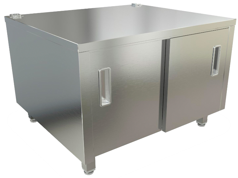 Подставка Техно-ТТ СПИ-834/807 предназначен для установки на нее индукционных плит ИПП-410134, ИПК-410114, грилей ИПГ-240184, ИПГ-240164 и нейтральных модулей МН-90/800 и МН-91/800, а также для хранения кухонного инвентаря на предприятиях общественного питания и торговли. Модель оснащена дверями-купе, 1 сплошной полкой и регулируемыми по высоте ножками, что позволяет компенсировать неровности пола. Сварной каркас и полка выполнены из нержавеющей стали AISI 430.