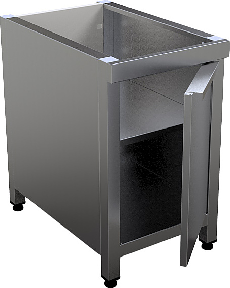 Закрытая подставка Кобор P9-2S2 серии 900 используется для установки индукционной плиты I9-2T. Поставка оснащена регулируемыми по высоте ножками и сплошой полкой, которую можно использовать для хранения кухонного инвентаря. Корпус выполнен из нержавеющей стали AISI 430, каркас - из профильной трубы 40х40 мм.