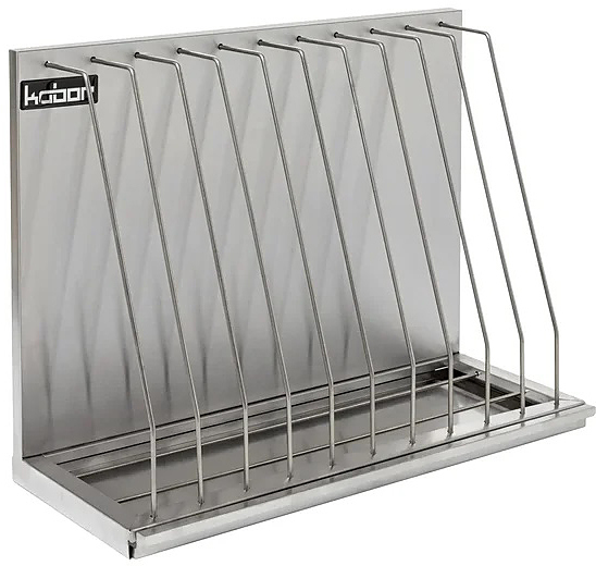 Полка Кобор ПКД-30/25 состоит из широких ячеек, что помогает разместить 4 доски разной толщины. Внизу полки находится специальный поддон для сбора воды.