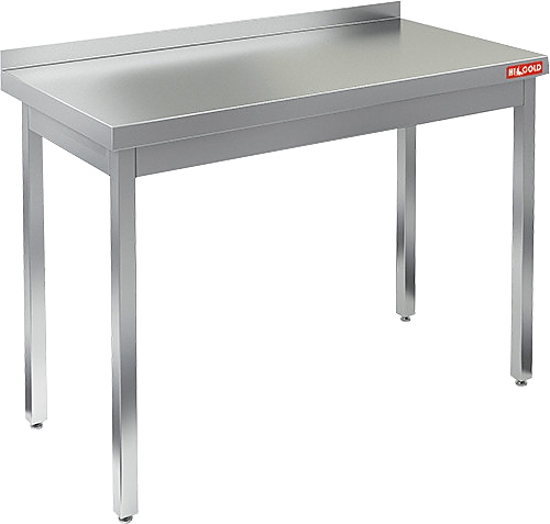 Столешница выполнена из нержавеющей стали толщиной 0,8 мм, усилена листом ДСП, опорные ножки - из трубы 40х40 мм из нержавеющей стали.