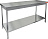 Столешница выполнена из нержавеющей стали толщиной 0,8 мм, усилена листом ДСП, опорные ножки - из трубы 40х40 мм из нержавеющей стали.