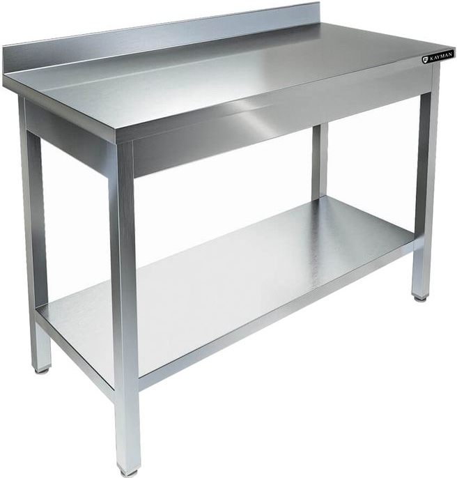 Производственный стол KAYMAN СП-222/1806 используется на предприятиях общественного питания и торговли для раскатки теста и обработки ингредиентов для приготовления блюд, а также как дополнительное место для установки и хранения кухонных приборов, инвентаря и сухих продуктов. Каркас выполнен из нержавеющей трубы AISI 430 40х40 мм, столешница - из нержавеющей стали AISI 430 толщиной 0,8 мм, усилена листом ЛДСП толщиной 16 мм.