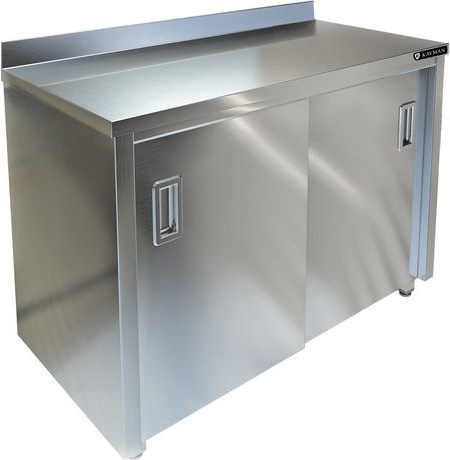 Производственный стол KAYMAN СТП-222/1807 предназначен для разделки и обработки ингредиентов для приготовления блюд, хранения кухонного инвентаря и сухих пищевых продуктов на предприятиях общественного питания и торговли. Корпус выполнен из нержавеющей стали AISI 430, столешница - из нержавеющей стали AISI 430 толщиной 0,8 мм, столешница усилена листом ЛДСП толщиной 16 мм, задняя стенка - из оцинкованного металла.