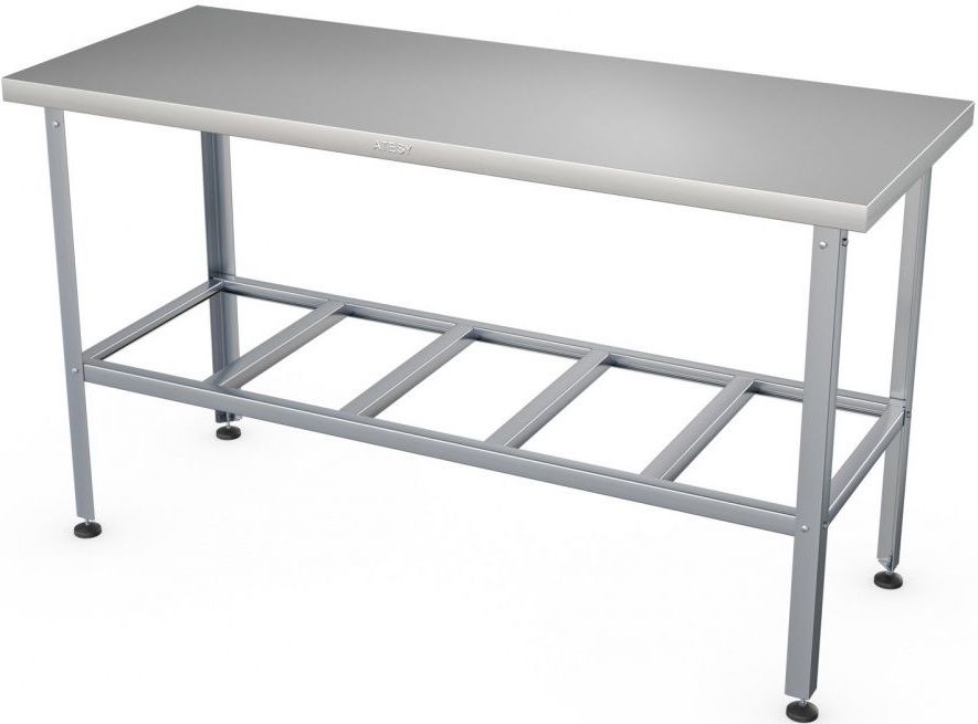 Производственный стол ATESY СР-С-800.600-02 серии Стандарт предназначается для разделывания и обработки пищевых продуктов, использования кухонного оборудования на предприятиях общественного питания, торговли и пищевых производствах. Конструкция - разборная. Кромки столешницы и каркаса имеют безопасную фальцовку, углы столешницы заварены и зашлифованы. Опоры ножек регулируются по высоте. Материал каркаса и решетчатой полки - оцинкованная сталь, материал столешницы - нержавеющая сталь AISI 430.