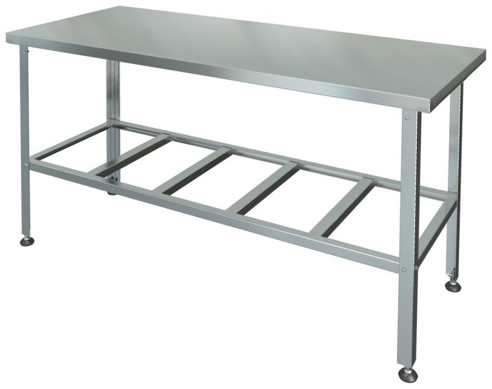 Производственный стол Марихолодмаш СРП-0-0,5/0,8 предназначен для раскатки теста и обработки ингредиентов для приготовления блюд, а также может использоваться в качестве дополнительного места для установки кухонных приборов на предприятиях общественного питания и торговли. Рабочая поверхность, усиленная ЛДСП толщиной 15 мм, выполнена из нержавеющей стали AISI 430 толщиной 0,5 мм, ножки с регулируемыми опорами - из уголка 40х40 мм из оцинкованной стали толщиной 1 мм с подгибом краёв вовнутрь.