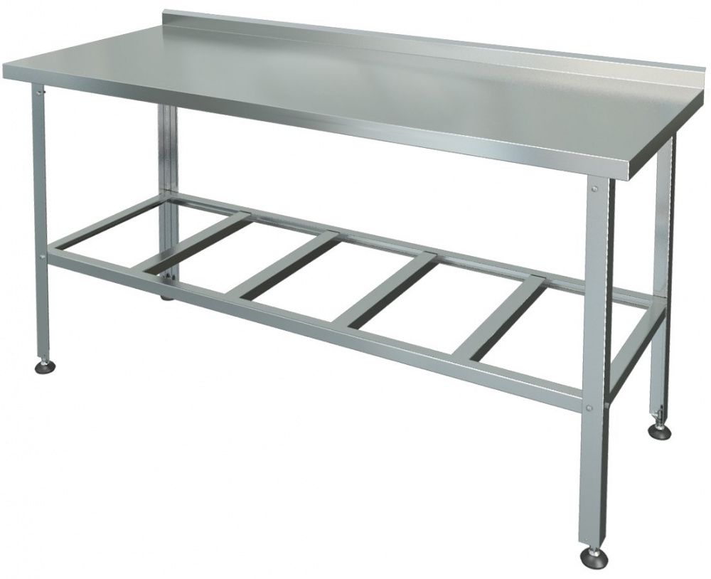Производственный стол Марихолодмаш СРП-1-0,7/0,7 предназначен для раскатки теста и обработки ингредиентов для приготовления блюд, а также может использоваться в качестве дополнительного места для установки кухонных приборов на предприятиях общественного питания и торговли. Рабочая поверхность, усиленная ЛДСП толщиной 15 мм, выполнена из нержавеющей стали AISI 430 толщиной 0,5 мм, ножки с регулируемыми опорами - из уголка 40х40 мм из оцинкованной стали толщиной 1 мм с подгибом краёв вовнутрь.