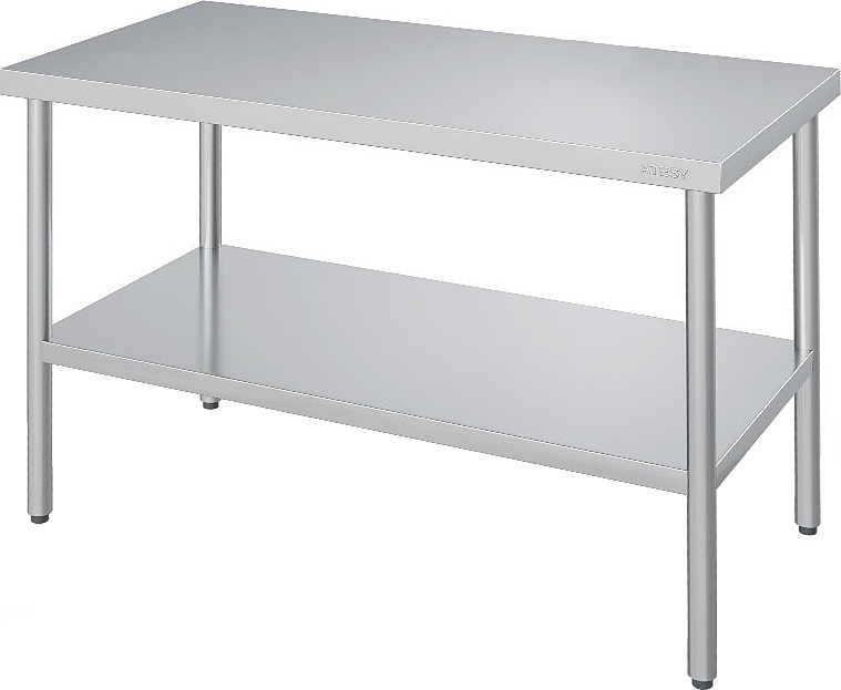 Производственный стол ATESY СР-П-300.700-02 серии Престиж используется на предприятиях общественного питания, торговли и пищевых производствах для раскатки теста, приготовления различных блюд и хранения кухонных принадлежностей. Материал рабочей поверхности – нержавеющая сталь AISI 430 усилена листом ЛДСП (толщина 16 мм), материал каркаса - нержавеющая сталь AISI 201 (труба 40х40 мм), материал сплошной полки – нержавеющая сталь AISI 430, конструкция - разборная.