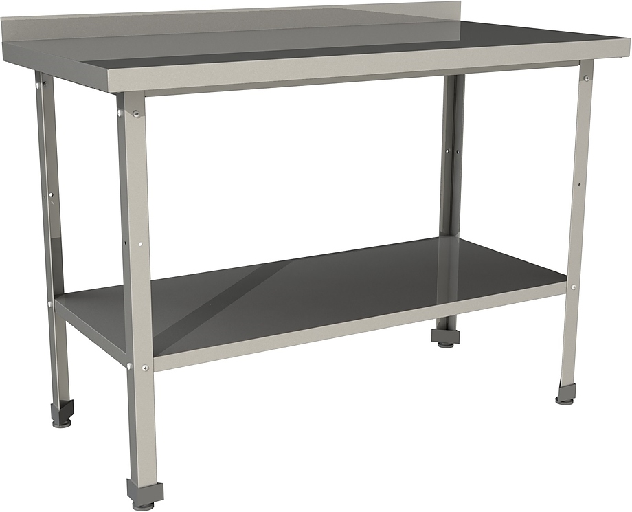 Производственный стол Restoinox СП-15/6-БП-ЭН серии 600 предназначен для обработки продуктов питания, раскатки теста, хранения кухонного инвентаря и оборудования на предприятиях общественного питания, торговли и пищевых производствах. Опоры ножек регулируются по высоте. Материал ножек - уголок из нержавеющей стали AISI 430 (40х40 мм), материал рабочей поверхности и полки - нержавеющая сталь AISI 430.