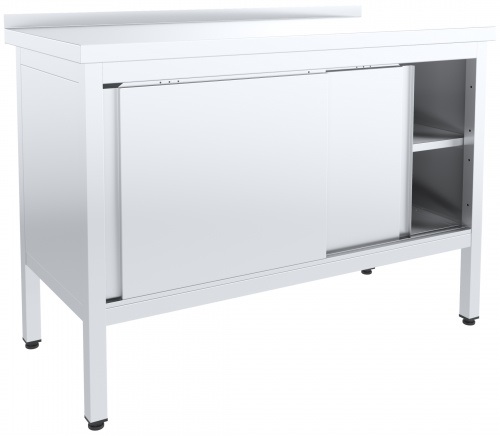 Стол-тумба Пищевые Технологии СТ-К-10/6СНК-Мб используется на предприятиях общественного питания, торговли и пищевых производствах для обработки ингредиентов, приготовления различных блюд, раскатки теста и хранения кухонного инвентаря. Модель оснащена дверьми-купе, сплошной полкой и регулируемыми ножками. Материал столешницы - высококачественная нержавеющая сталь AISI 430 толщиной 0.8 мм, усиленная листом ЛДСП толщиной 16 мм, материал полок, дверей-купе, боковых и задней стенки - высококачественная нержавеющая сталь AISI 430 толщиной 0.8 мм, материал каркаса - нержавеющая сталь (труба 40х40 мм).