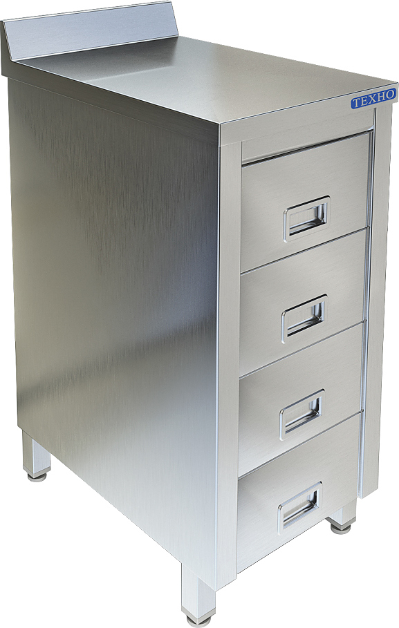 Производственный стол-тумба Техно-ТТ СПС-226/608Н предназначен для разделки и обработки пищевых продуктов, а также для расстановки и хранения посуды и кухонного инвентаря на предприятиях общественного питания, торговли и пищевых производствах. Стол оснащен бортом и 4 выдвижными ящиками. Материал корпуса, ящиков и столешницы - нержавеющая сталь AISI 304, материал задней стенки - нержавеющая сталь AISI 430.