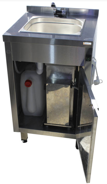 Автономный рукомойник Gastrolux РНА-5/5 предназначен для работы в условиях невозможности подключиться к водопроводу и канализации на предприятиях общественного питания. Корпус выполнен из оцинкованной стали с полимерным покрытием, цельнотянутая ванна и бак для воды - из пищевой нержавеющей стали. Рукомойник укомплектован смесителем, погружным насосом (помпой) и датчиком уровня воды. Автономный рукомойник нашел свое применение у владельцев мобильных торговых точек и предприятий фаст-фуда, вахтовиков и строителей.