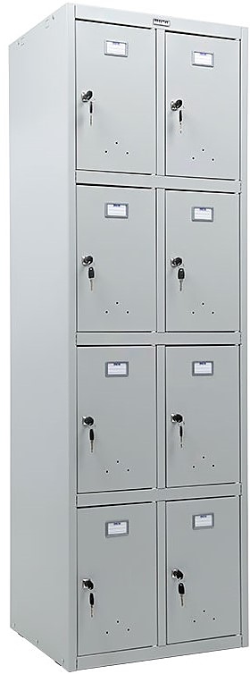 Шкаф для одежды ПРОМЕТ Практик Стандарт LS-24 предназначается для хранения одежды, обуви и личных вещей персонала на предприятиях общественного питания, торговли, пищевых и промышленных производствах. Модель оснащена 8 секциями и замками. Материал корпуса и задней стенки - сталь с порошковой окраской.