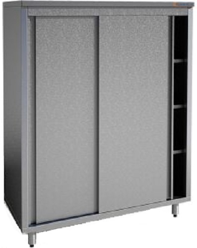 Кухонный шкаф Enigma RUS Е-ШК-156 предназначен для хранения сухих продуктов и кухонной утвари на предприятиях общественного питания, торговли и пищевых производствах. Модель оснащена 2 дверьми-купе, сплошными полками и регулируемыми ножками. Материал изделия - нержавеющая сталь AISI 430.
