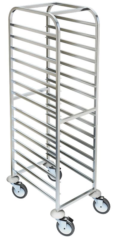 Тележка-шпилька Техно-ТТ СТС-224/406 предназначена для транспортировки и хранения гастроемкостей на предприятиях общественного питания и торговли. Модель оснащена 4 поворотными колесами, 2 из которых с тормозными устройствами и отбойниками. Каркас выполнен из квадратной трубы 20х20 мм из нержавеющей стали AISI 304, полозки - из нержавеющей стали AISI 304, отбойники - из пластика, колеса покрыты резиной.