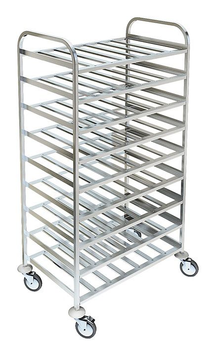 Тележка-шпилька Техно-ТТ СТС-229/800 предназначена для транспортировки и хранения подносов на предприятиях общественного питания и торговли. Модель оснащена 4 поворотными колёсами, 2 из которых с тормозными устройствами и отбойниками. Каркас и решетчатые полки выполнен из нержавеющей стали AISI 304, отбойники - из пластика, колеса покрыты резиной.