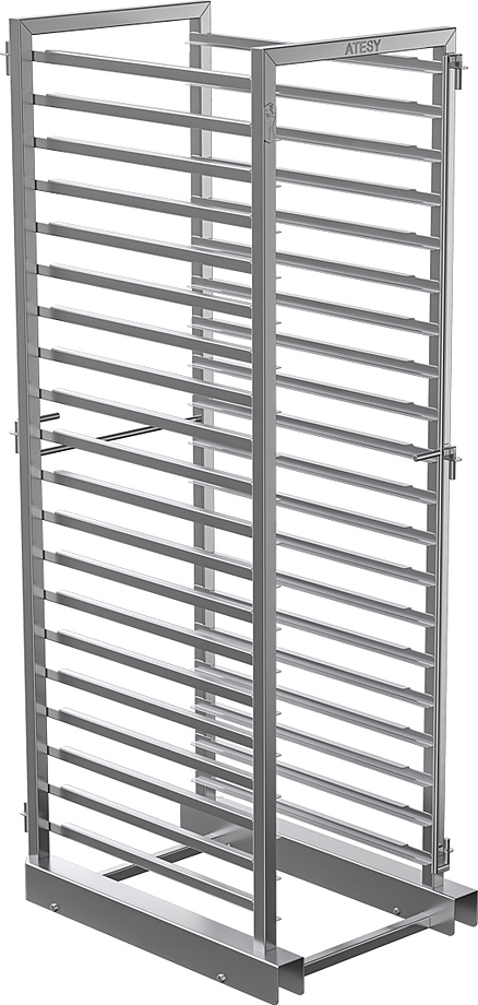 Шпилька ATESY для АПК-20-1.1-03-1 используется на предприятиях общественного питания и торговли для размещения на ней гастроемкостей и последующей установки в рабочую камеру пароконвектомата ATESY Рубикон АПК-20-1.1-03-01. Модель оснащена специальными запорными механизмами для надежной фиксации в камере пароконвектомата и на тележке. Изделие выполнено из нержавеющей стали AISI 304 толщиной 1,5 мм.
