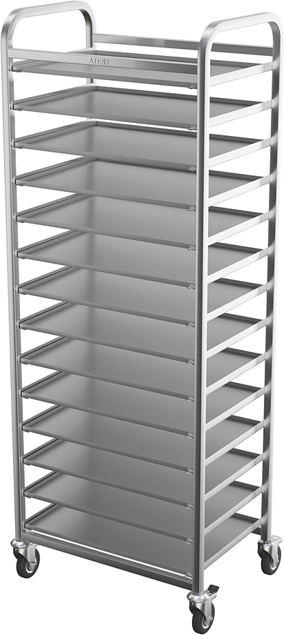 Тележка-шпилька ATESY КШ-Л-1.14-600.400-02 серии Люкс предназначается для временного хранения и перемещения гастроемкостей между линиями раздачи готовых блюд и кухней на предприятиях общественного питания, торговли и пищевых производствах. Тележка оснащена 4 поворотными колесами (2 с тормозами), кромками с безопасным подгибом. Тип конструкции - сварная, стойки из труб квадратного сечения. Материал конструкции - нержавеющая сталь AISI 304.