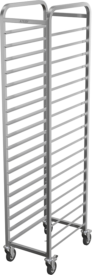 Тележка-шпилька ATESY КШ-Л-1.18-1.1-02 серии Люкс предназначается для временного хранения и перемещения гастроемкостей между линиями раздачи готовых блюд и кухней на предприятиях общественного питания, торговли и пищевых производствах. Тележка оснащена 4 поворотными колесами (2 с тормозами), кромками с безопасным подгибом. Тип конструкции - сварная, стойки из труб квадратного сечения. Материал конструкции - нержавеющая сталь AISI 304.