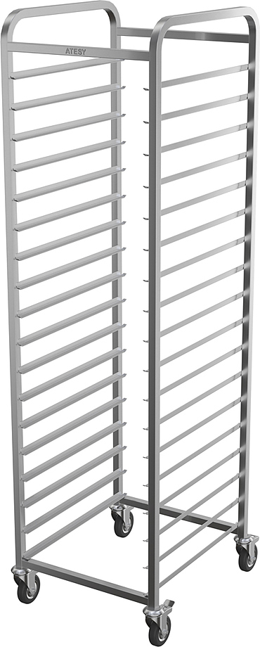 Тележка-шпилька ATESY КШ-Л-1.18-470.580-02 серии Люкс предназначается для временного хранения и перемещения гастроемкостей между линиями раздачи готовых блюд и кухней на предприятиях общественного питания, торговли и пищевых производствах. Тележка оснащена 4 поворотными колесами (2 с тормозами), кромками с безопасным подгибом. Тип конструкции - сварная, стойки из труб квадратного сечения. Материал конструкции - нержавеющая сталь AISI 304.