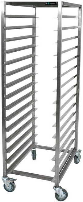 Тележка-шпилька Hurakan HKN-RTG-13/0506используется на предприятиях общественного питания, торговли и пищевых производствах для перемещения подносов с грязной посудой. Модель оборудована 4-мя поворотными колесами, 2 из которых снабжены тормозными устройствами.