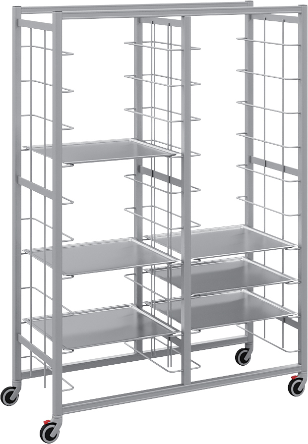 Тележка-шпилька POLAIR LOAD.ME.KITCHEN KU16.18.50.79D используется на предприятиях общественного питания, торговли и пищевых для хранения и транспортировки подносов. Модель оснащена поворотными колесиками и стопорами. Материал рамы - анодированный алюминий, материал направляющих - высококачественная нержавеющая сталь.