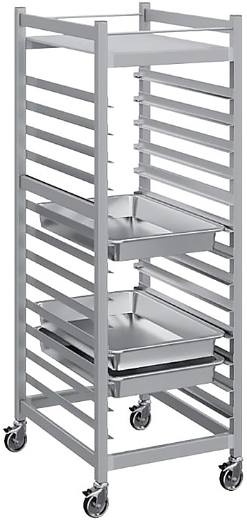 Тележка-шпилька POLAIR LOAD.ME.KITCHEN KG18.19.1/1 используется на предприятиях общественного питания, торговли и пищевых для хранения и транспортировки гастроемкостей. Модель оснащена поворотными колесиками и стопорами. Материал рамы - анодированный алюминий, материал направляющих - высококачественная нержавеющая сталь.