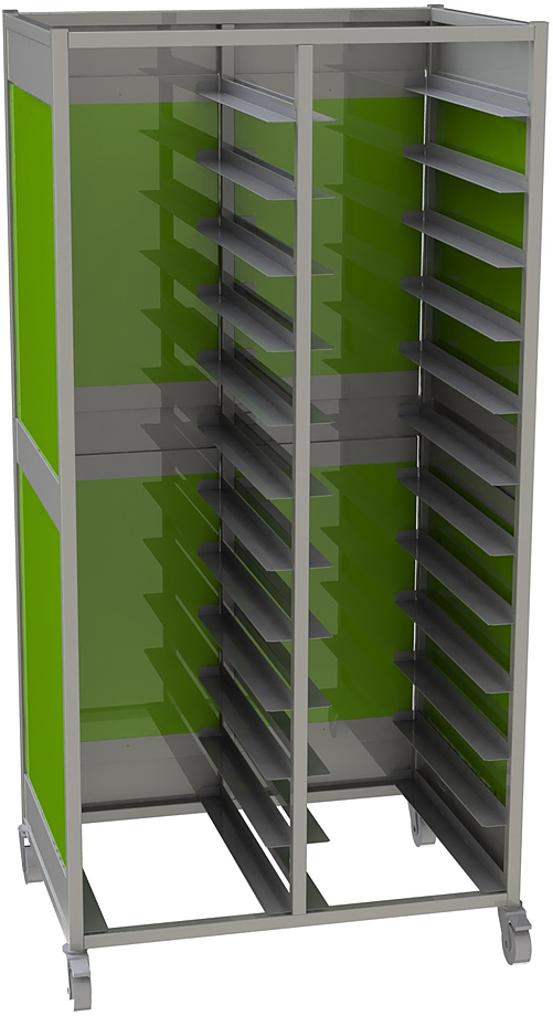 Тележка-шпилька Restoinox ТШCЗПП-12х2-25/25-430 предназначается для перемещения подносов и противней на предприятиях общественного питания, торговли и пищевых производствах. Тележка установлена на поворотных колесах, 2 оснащены стопорным механизмом. Материал сварного каркаса - нержавеющая сталь AISI 430 (труба 25х25 мм), материал направляющих - нержавеющая сталь AISI 430.