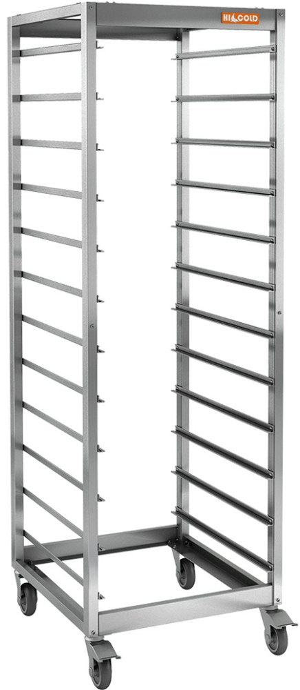 Тележка-шпилька HICOLD НТШ3Т-1/12 (GN-2/1) предназначена для хранения гастроемкостей в пекарнях и кондитерских цехах. Данное оборудование из нержавеющей стали AISI 430 оснащено каркасом-трубой, 12 уровнями и 4 прорезиненными колесами с двумя блокаторами, защищающими пол от царапин. Особенностями тележки являются высокая маневренность и идеальное проектирование.