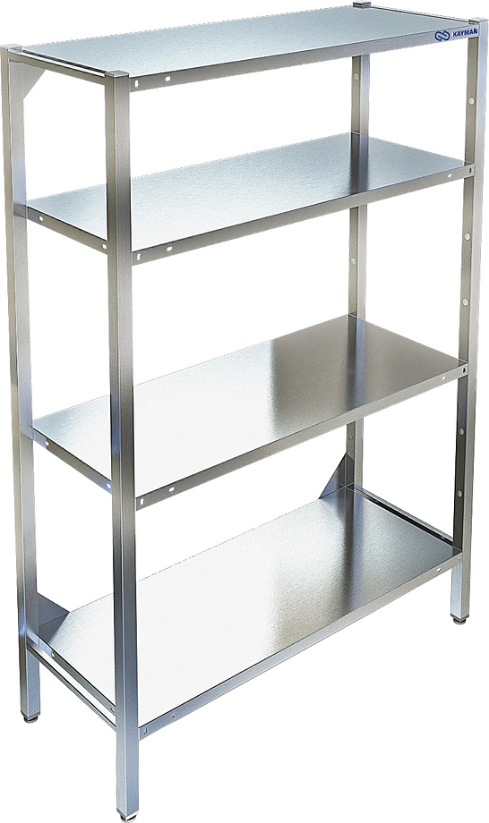 Кухонный стеллаж Техно-ТТ СТР-134/704 используется на предприятиях общественного питания, торговли и пищевых производствах для хранения посуды, кухонного инвентаря и продуктов. В модели предусмотрены регулируемые ножки и полки. Тип каркаса - разборный, полки - сплошные. Материал каркаса - нержавеющая сталь AISI 304 (труба 40х20 мм толщиной 1.2 мм), материал полок - нержавеющая сталь AISI 304 (толщина 0.8 мм).