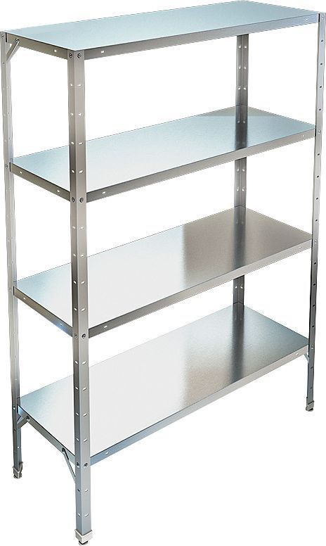 Кухонный стеллаж Техно-ТТ СТР-314/1800 используется на предприятиях общественного питания, торговли и пищевых производствах для хранения посуды, кухонного инвентаря и продуктов. В модели предусмотрены регулируемые ножки и полки. Тип каркаса - разборный, полки - сплошные. Материал каркаса - крашеный металл (уголок 40х40 мм толщиной 2 мм), материал полок - нержавеющая сталь AISI 430 (толщина 0.8 мм).
