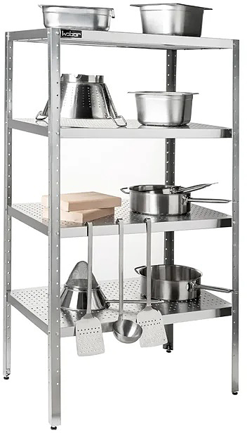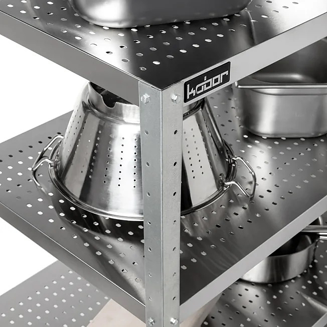 Кухонный стеллаж Кобор СКП-90/40 используется на предприятиях общественного питания, торговли и пищевых производствах для хранения посуды, инвентаря и сухих продуктов. Ножки регулируются по высоте, опоры ножек не подвергаются коррозии. Тип каркаса - разборный. Материал каркаса - оцинкованная сталь, материал полок - нержавеющая сталь AISI 430.
