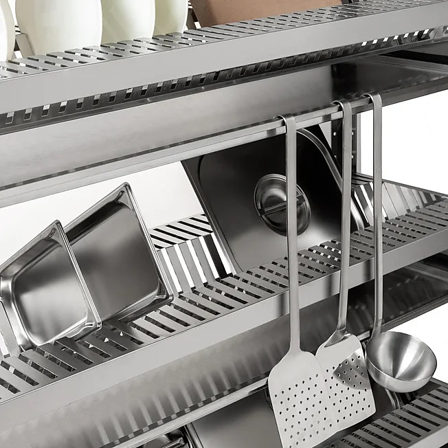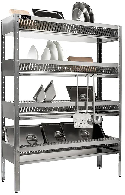 Стеллаж Кобор СКС-60/30 используется для сушки тарелок на предприятиях общественного питания, торговли и пищевой производствах. Модель оснащена 5 полками и регулируемыми ножками. Материал каркаса - уголок из оцинкованной стали, материал полок - нержавеющая сталь.