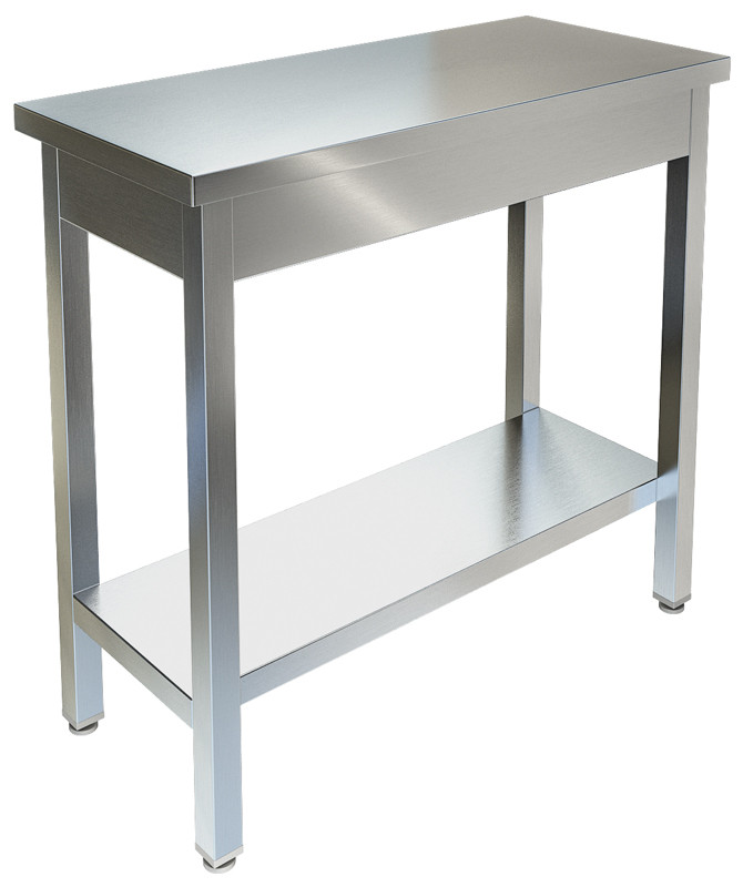 Стол-вставка Техно-ТТ СП-833/409Б предназначен для разделения тепловых линий, а так же для разделки и обработки пищевых продуктов, а также для расстановки и хранения посуды и кухонного инвентаря на предприятиях общественного питания и торговли. Модель оснащена регулируемыми по высоте ножками, что позволяет компенсировать неровности пола. Разборный каркас выполнен из трубы 40х40 мм из нержавеющей стали AISI 430, столешница с усилителями - из нержавеющей стали AISI 430, полка - из нержавеющей стали.