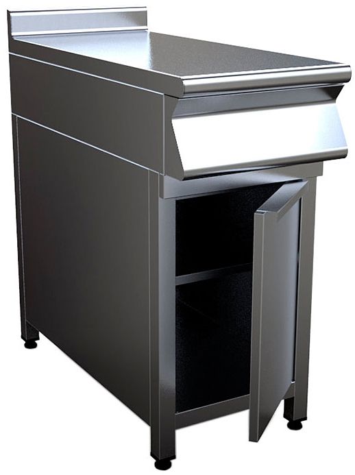 Закрытый нейтральный модуль Кобор N7-5E предназначен для использования в составе тепловой линии в качестве дополнительного места для раскатки теста, обработки ингредиентов для приготовления блюд, установки оборудования и приборов. Модуль оснащен сплошной полкой, распашной дверцей и регулируемыми по высоте ножками. Корпус выполнен из нержавеющей стали AISI 430, каркас - из профильной трубы 40х40 мм.
