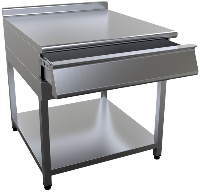 Открытый нейтральный модуль Кобор N9-8OB предназначен для использования в составе тепловой линии в качестве дополнительного места для раскатки теста, обработки ингредиентов для приготовления блюд, установки оборудования и приборов, хранения посуды и кухонных принадлежностей. Модуль оснащен выдвижным ящиком, сплошной полкой и регулируемыми по высоте ножками. Корпус выполнен из нержавеющей стали AISI 430, каркас - из профильной трубы 40х40 мм.