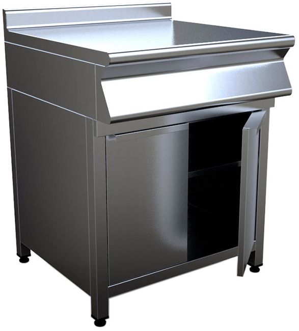 Закрытый нейтральный модуль Кобор N9-8E предназначен для использования в составе тепловой линии в качестве дополнительного места для раскатки теста, обработки ингредиентов для приготовления блюд, установки оборудования и приборов. Модуль оснащен сплошной полкой, распашными дверцами и регулируемыми по высоте ножками. Корпус выполнен из нержавеющей стали AISI 430, каркас - из профильной трубы 40х40 мм.